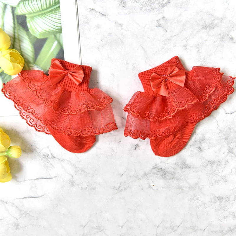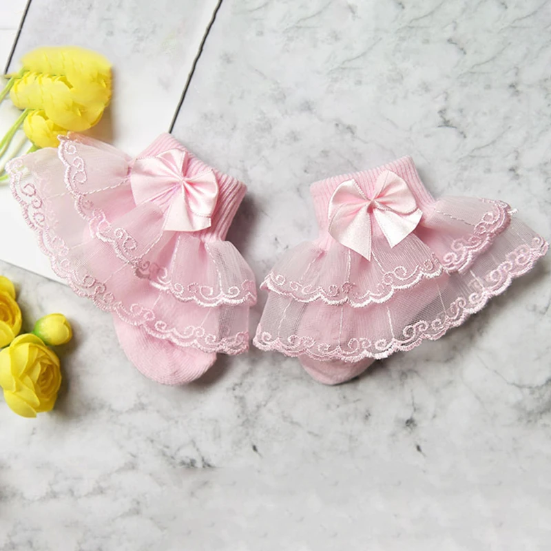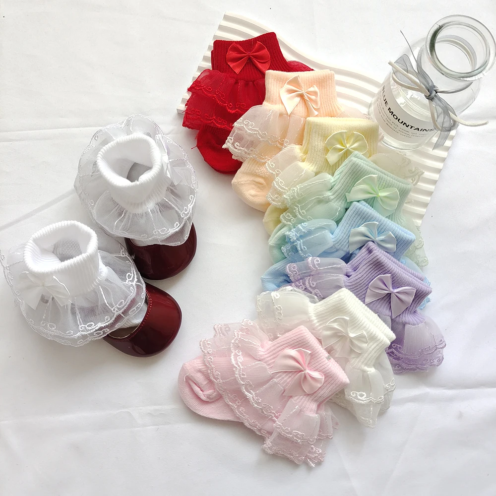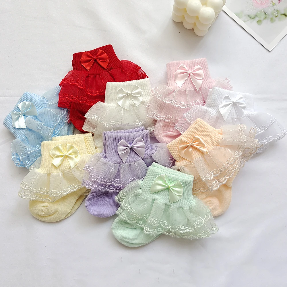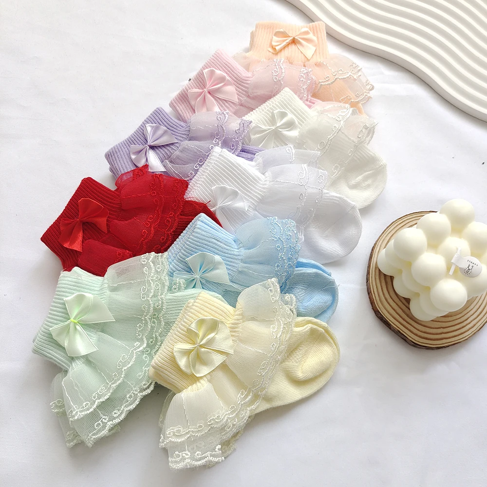 0-9Y Baby Cotton Socks With Lace Girls Ankle Socks Bows Toddlers Floor Sock Cute Frilly Socks For Children Girls Princess Sock