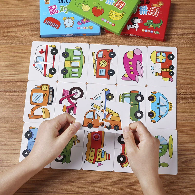 32PCS Toddler Card Match Game Cognitive Truck Fruit Animal Life Set Puzzle Children Cognitive Early Educational Puzzle Toys