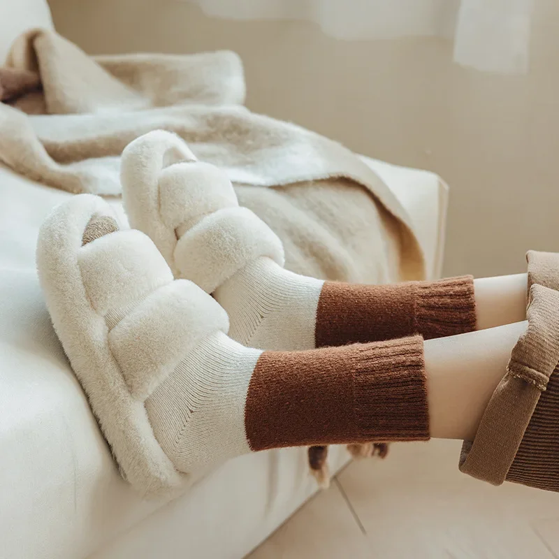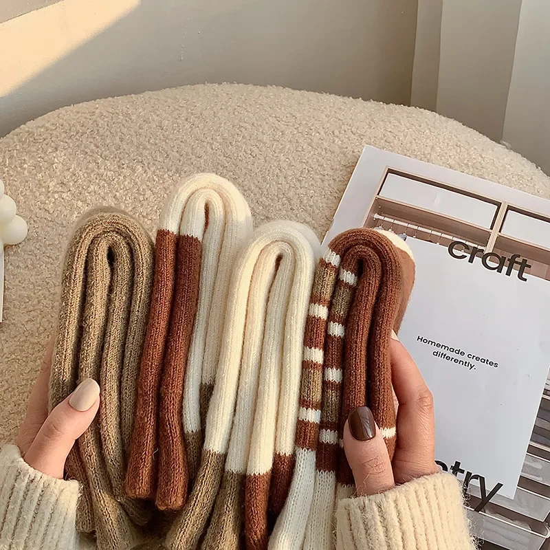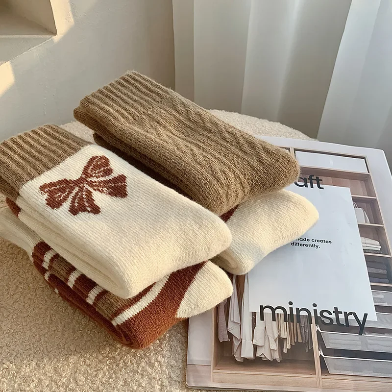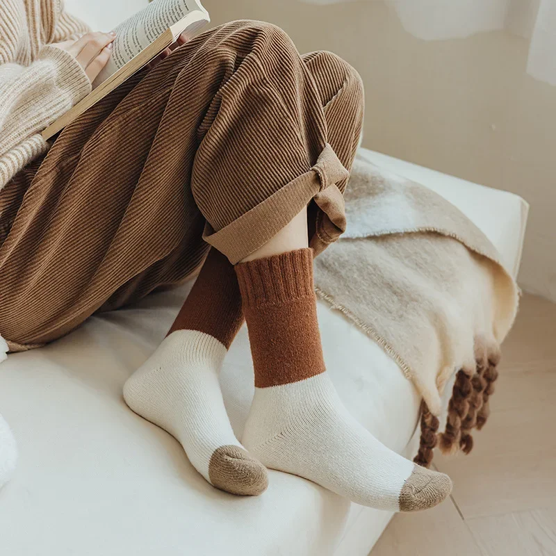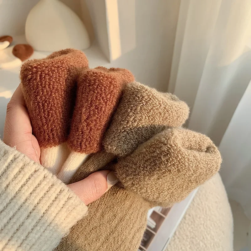 4 Pairs of Cashmere Socks for Women Autumn and Winter Plus Velvet Thickened Mid-tube Socks Warm Long Socks