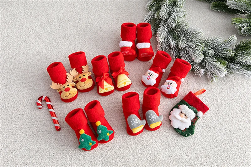 Baby Christmas Socks Newborns Cotton Winter Thickened Short Socks Kids Floor Socks Girls Boys Non-slip Print Toddler Clothing