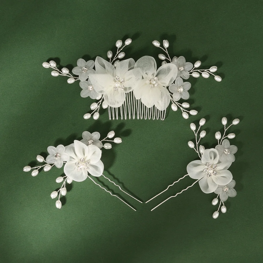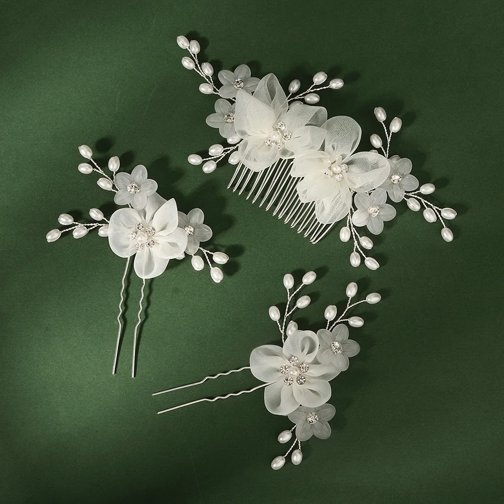 Bridal Headdress Flower Hair Comb Hairpin Set Handmade Women Bridal Hair Accessories Set Fashion Party Hairpins