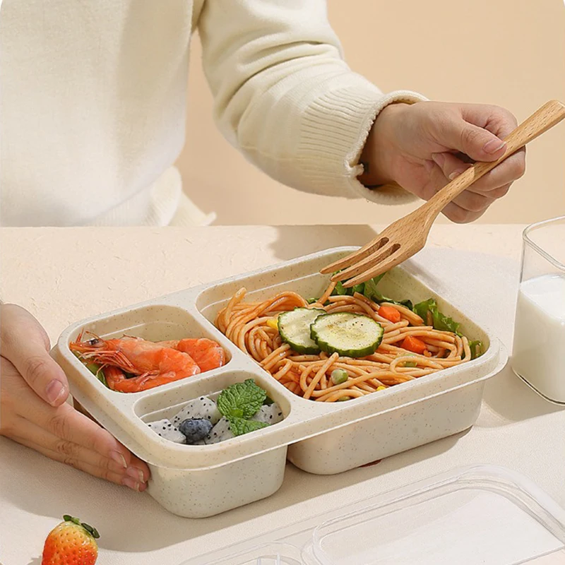 Environmentally Bento Box:The 3-compartment bento lunch box is made of durable,high quality wheat straw and food grade PP material,BPA free,no odor, stain-resistant.This is a stackable bento box adult lunch box that can replace disposable lunch boxes, sturdy and reusable, easy to clean.