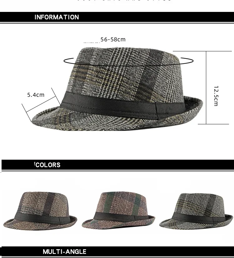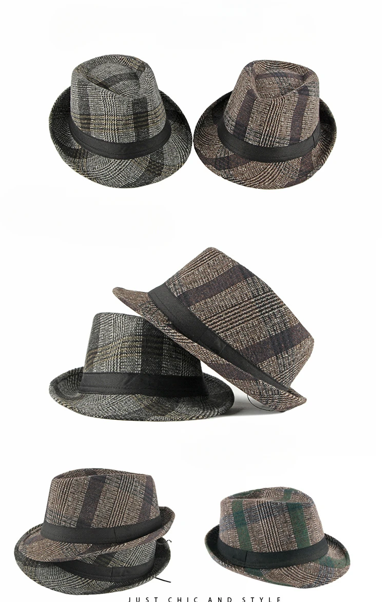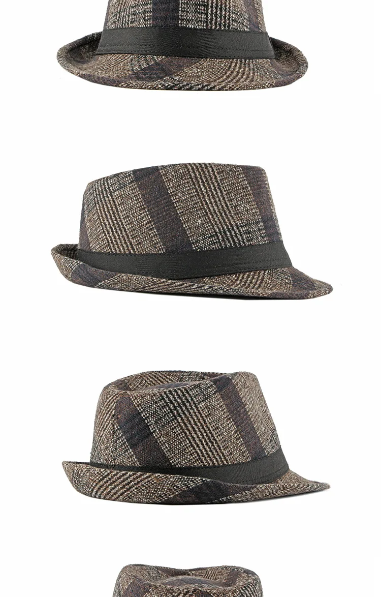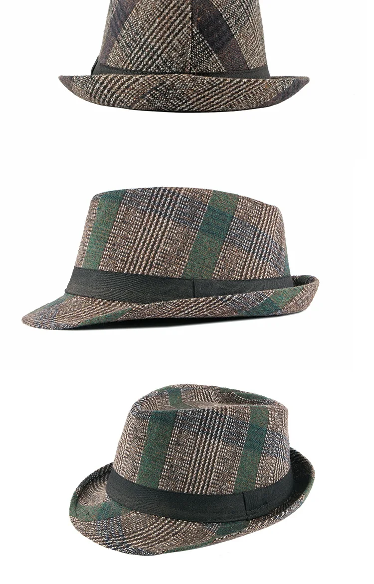 Spring Summer New Vintage Checked Top Hat Men's Middle-aged and Elderly Woolen Gentleman's Hat Jazz Hat