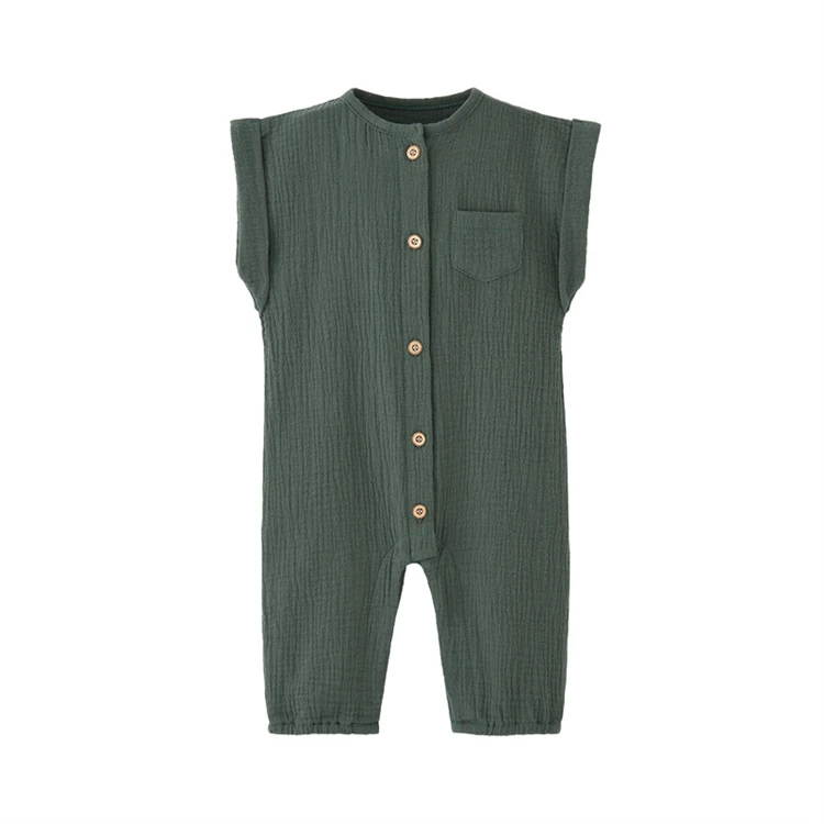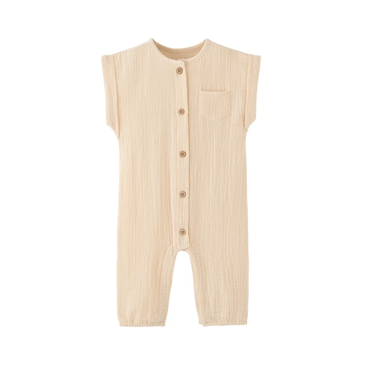 Summer Newborn Baby Romper Sleeveless Girl Boy Cotton Gauze Jumpsuit Solid Infant Soft Thin Gauze Cozy Rompers Pajamas